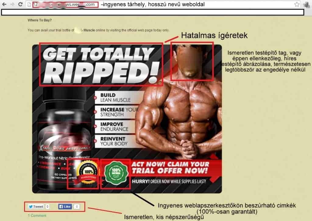 - Ingyenes tárhely, hosszú névvel – logikusnak tűnik, hogy minden komoly étrendkiegészítő forgalmazó megtesz annyit, hogy egy fizetett, például „.com; .hu;” domaint használ. Ez rövidebb és ismertebb, megbízhatóbb. A fenti ábrán, az eladó ennyire sem méltatta a terméket (akkor is, ha csak egy népszerűsítő oldal, amelyet egyértelműen az eladó készített).